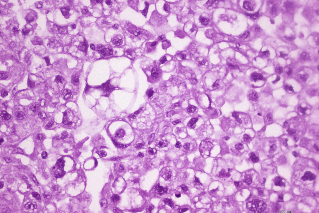 •Large cells with vesicular nuclei and often prominent nucleoli