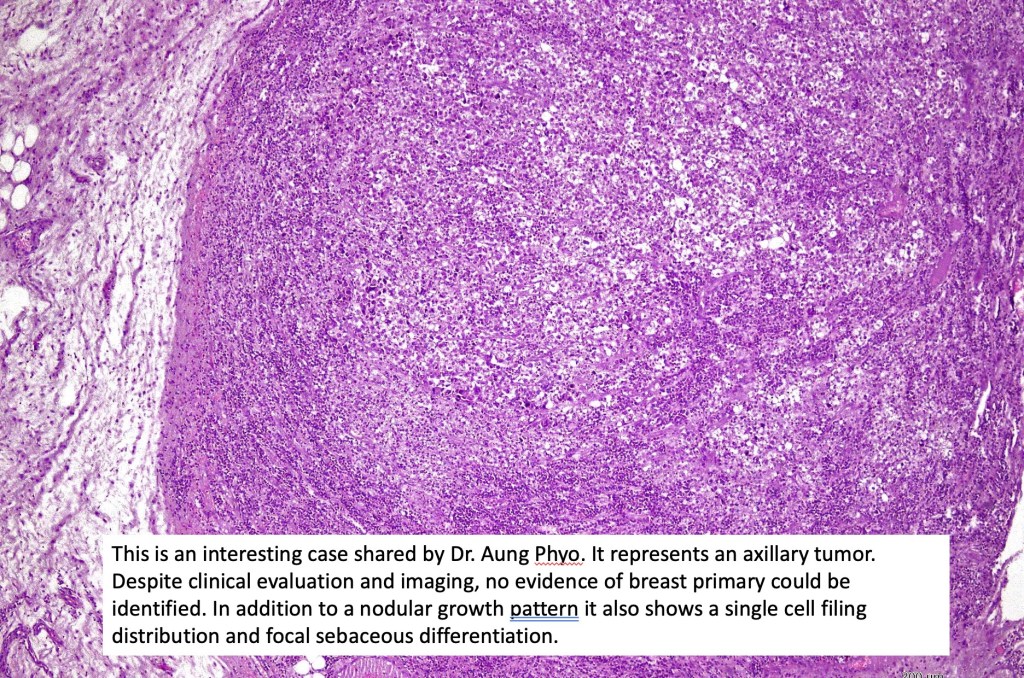 Thank you for this helpful link! I think it’s important to say that while most breast carcinomas are ER+/PR+/AR- (hence this IHC panel is generally helpful in the distinction) breast apocrine carcinoma is characteristically triple negative (ER-/PR-/HER2-) and AR+.