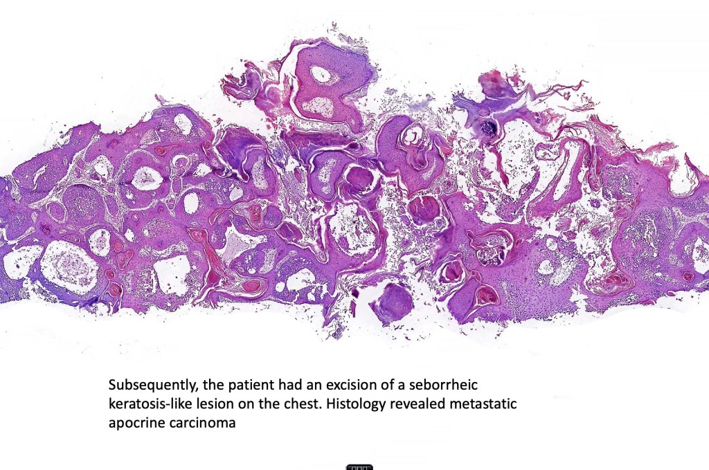 •Before accepting a tumor as being a cutaneous primary, the presence of an apocrine carcinoma elsewhere (particularly the breast) must always be excluded