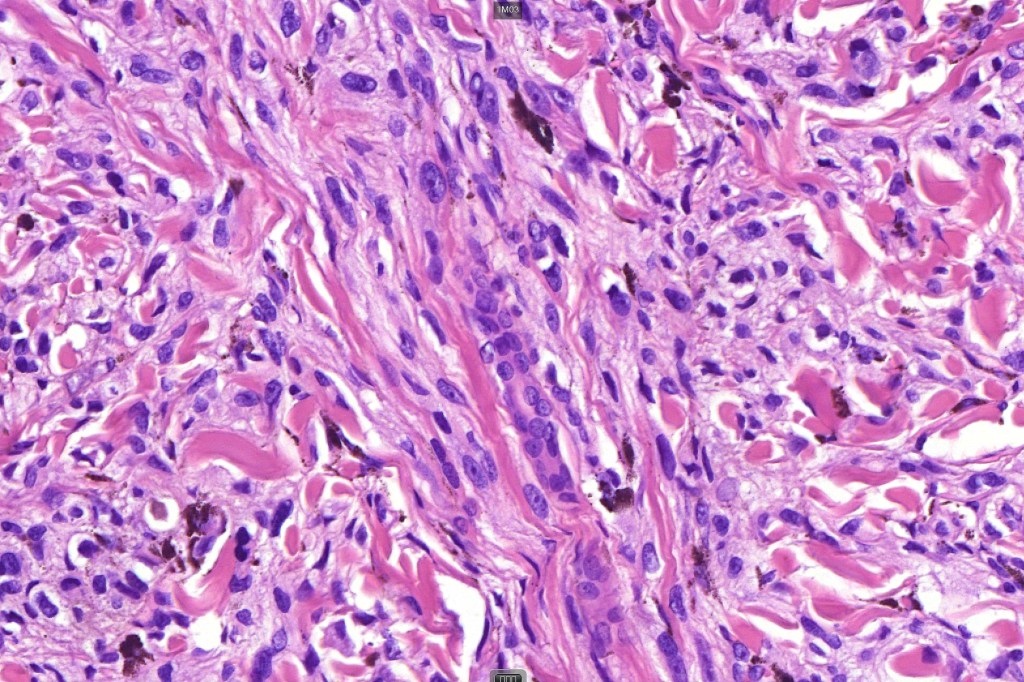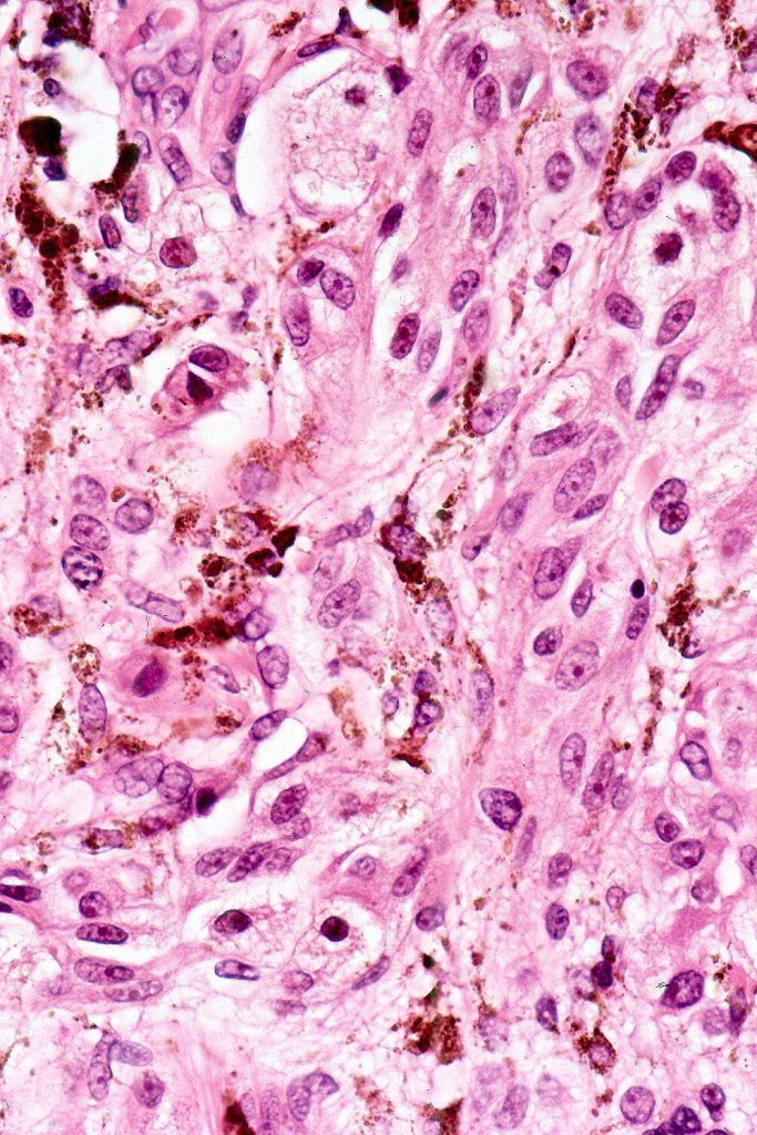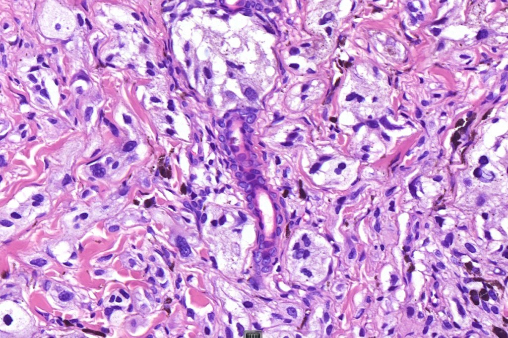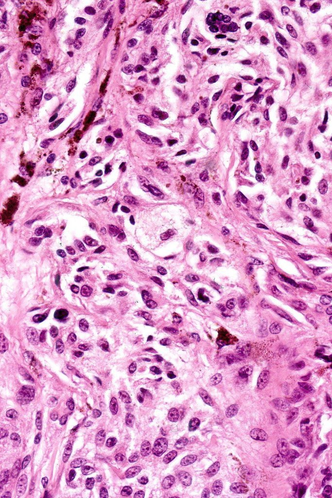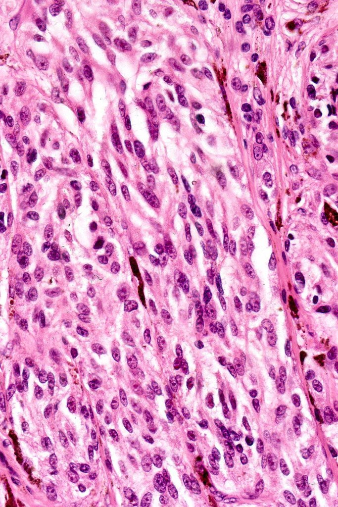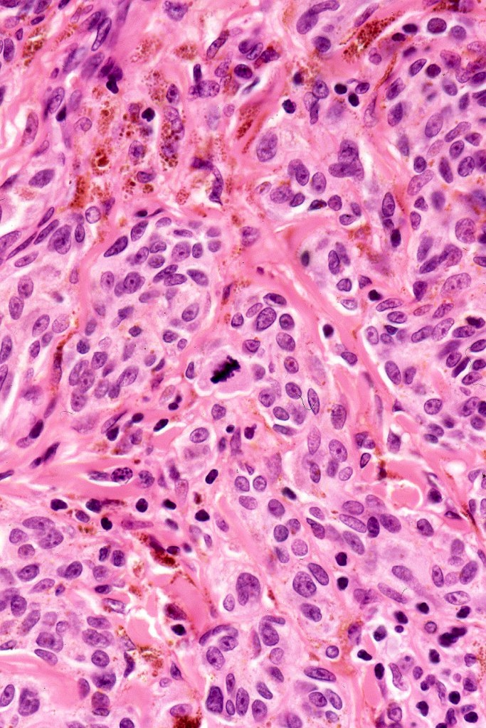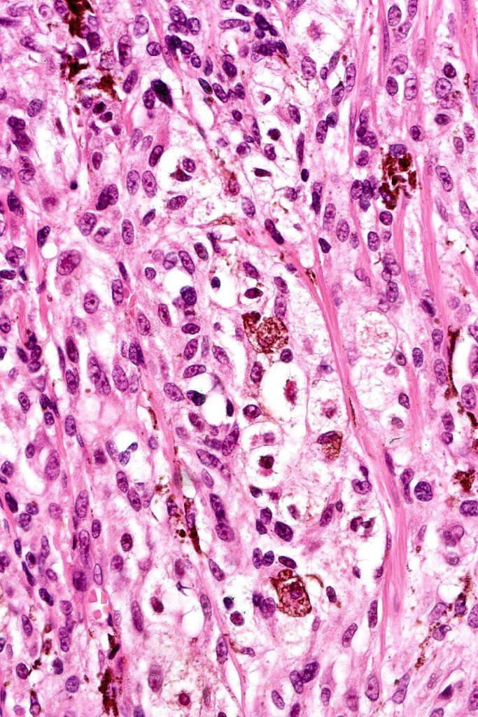 Atypical features which may be encountered include marked nuclear pleomorphism, conspicuous mitotic activity, atypical mitoses (atypical or borderline lesion)- may be associated with lymph node involvement although frank maliganncy is exceptional
