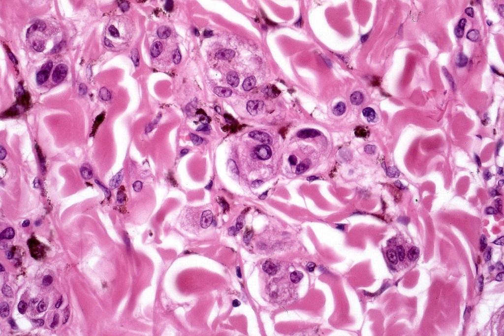 • Cytoplasmic intranuclear pseudo-inclusions, small eosinophilic nucleoli