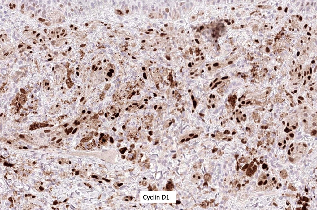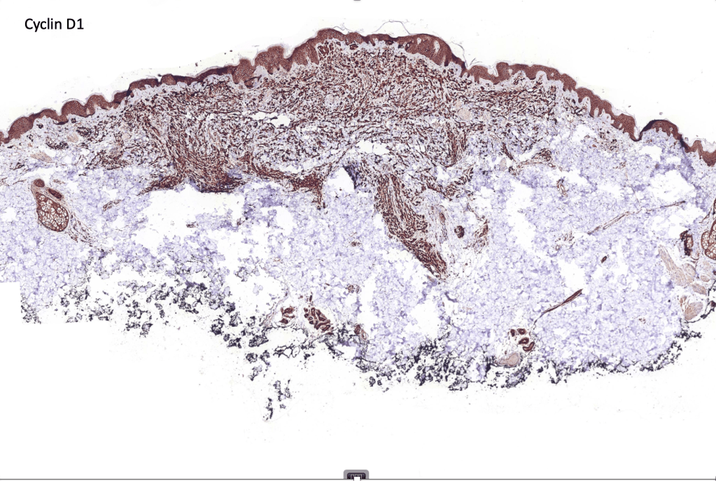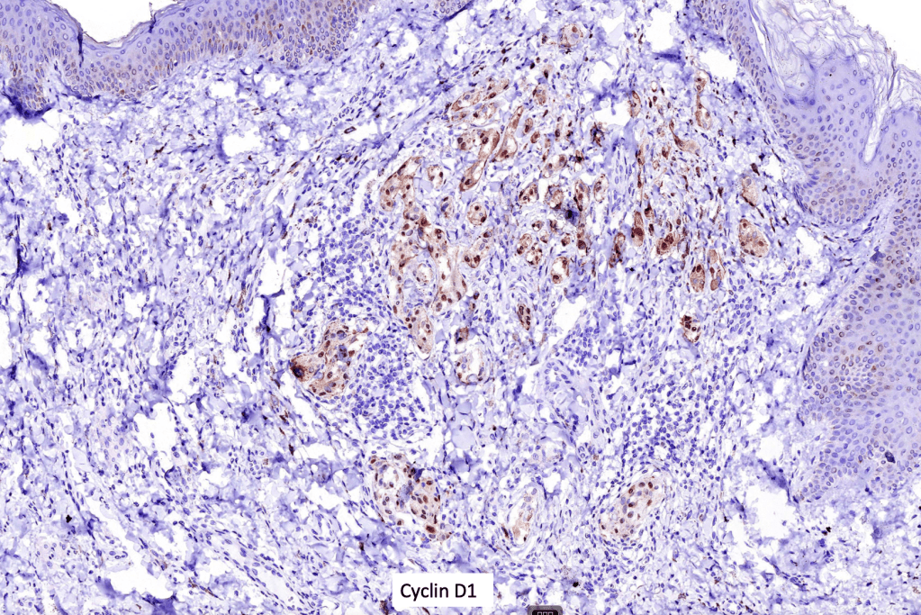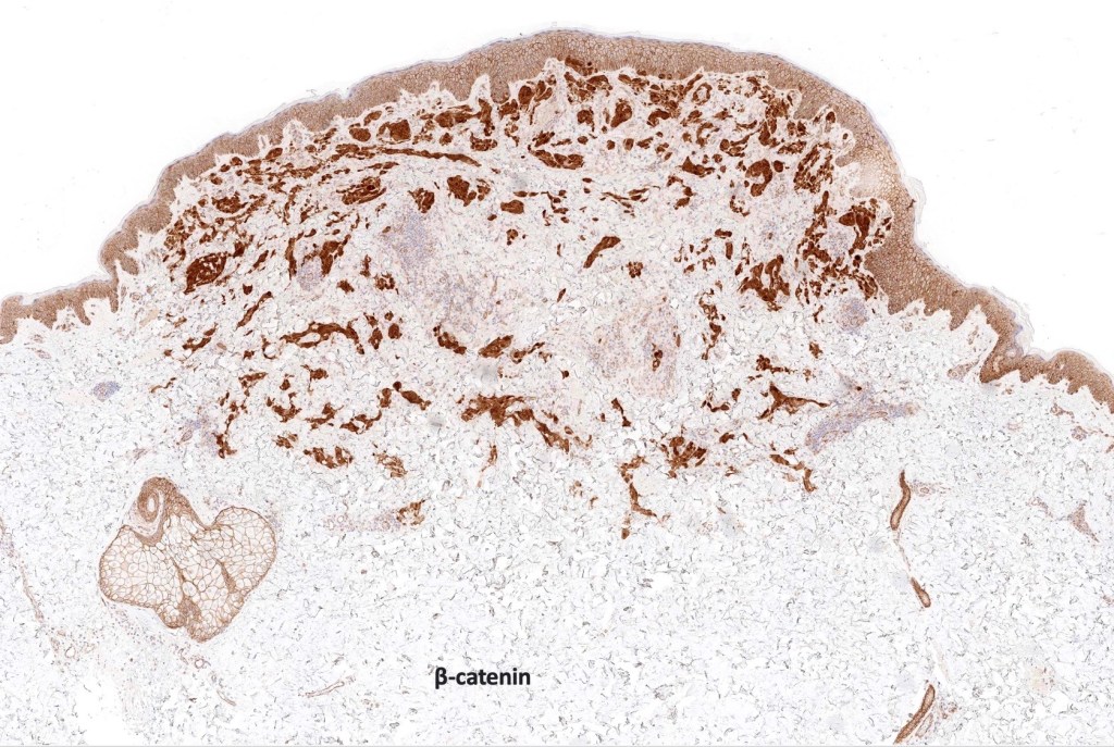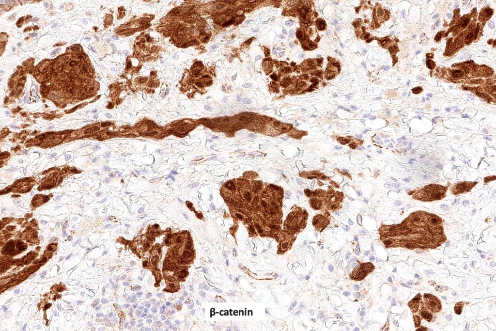 •Strong nuclear & cytoplasmic expression of β catenin, cyclin D1 & LEF1