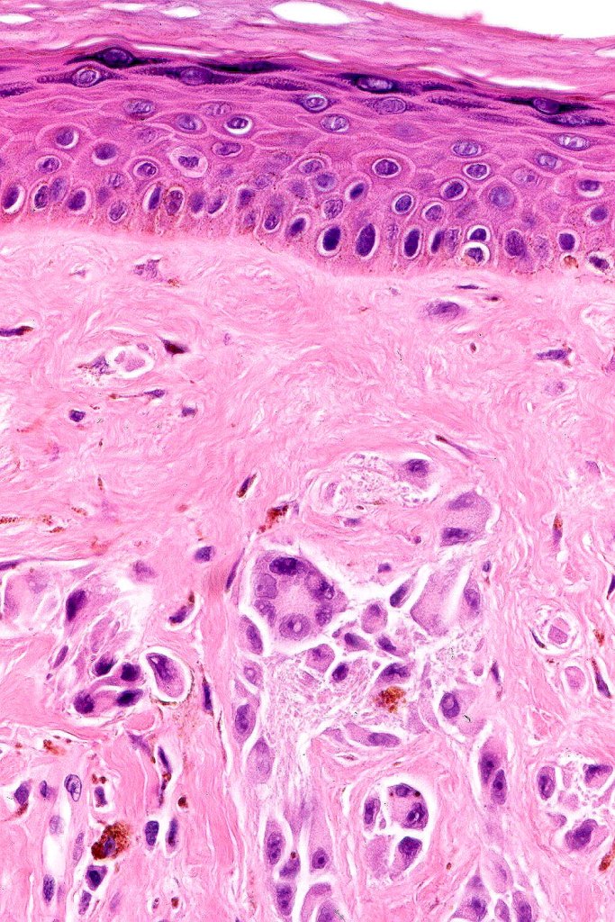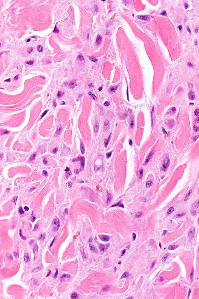 •In some cases, nested collections of spindle or epithelioid cells are present in the superficial dermis