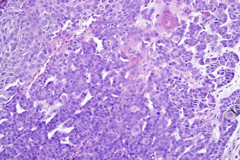 Dendritic cells are not a feature of matrical carcinoma. Pleomorphism & mitotic activivty is much more pronounced in the latter and perineural infoltration and/or lymphovascular invasion/necrosis may also be present.