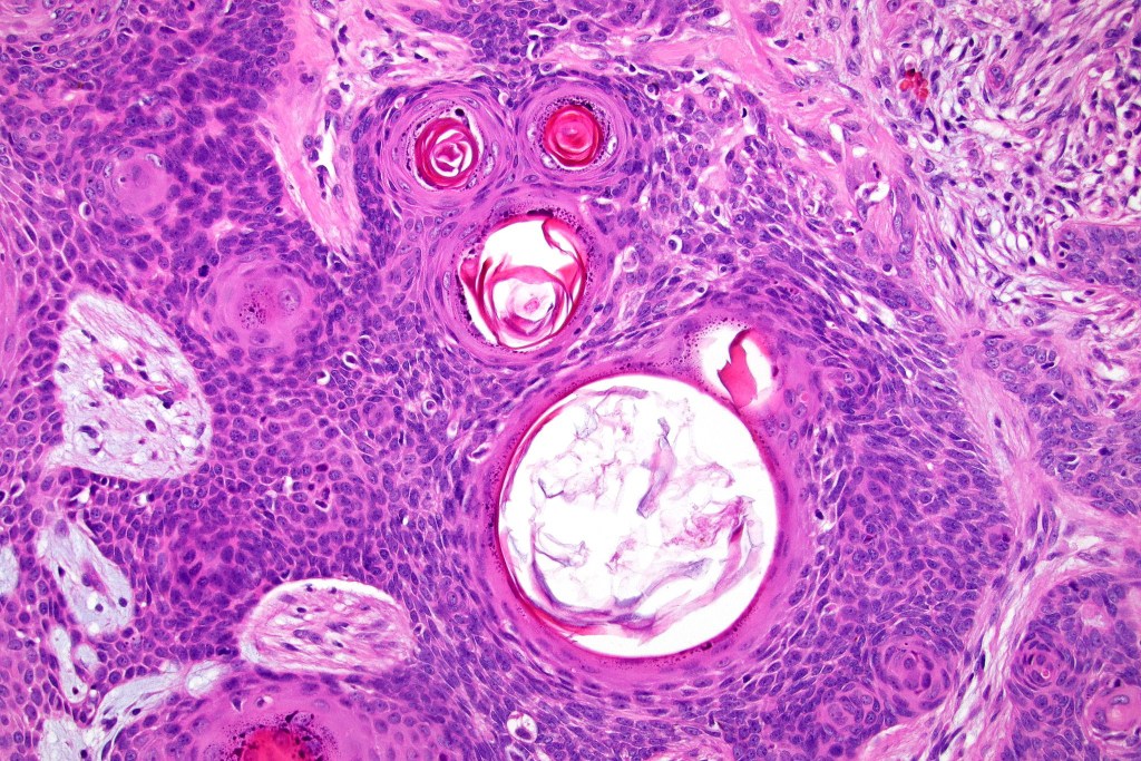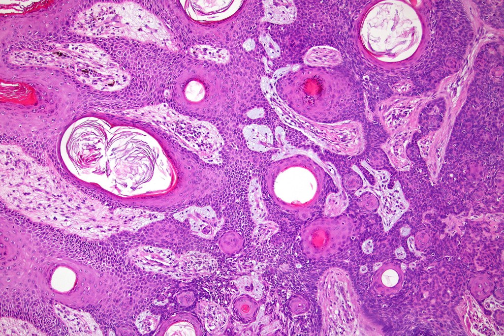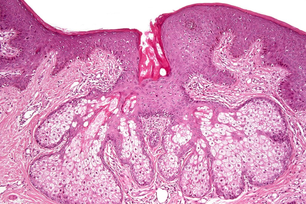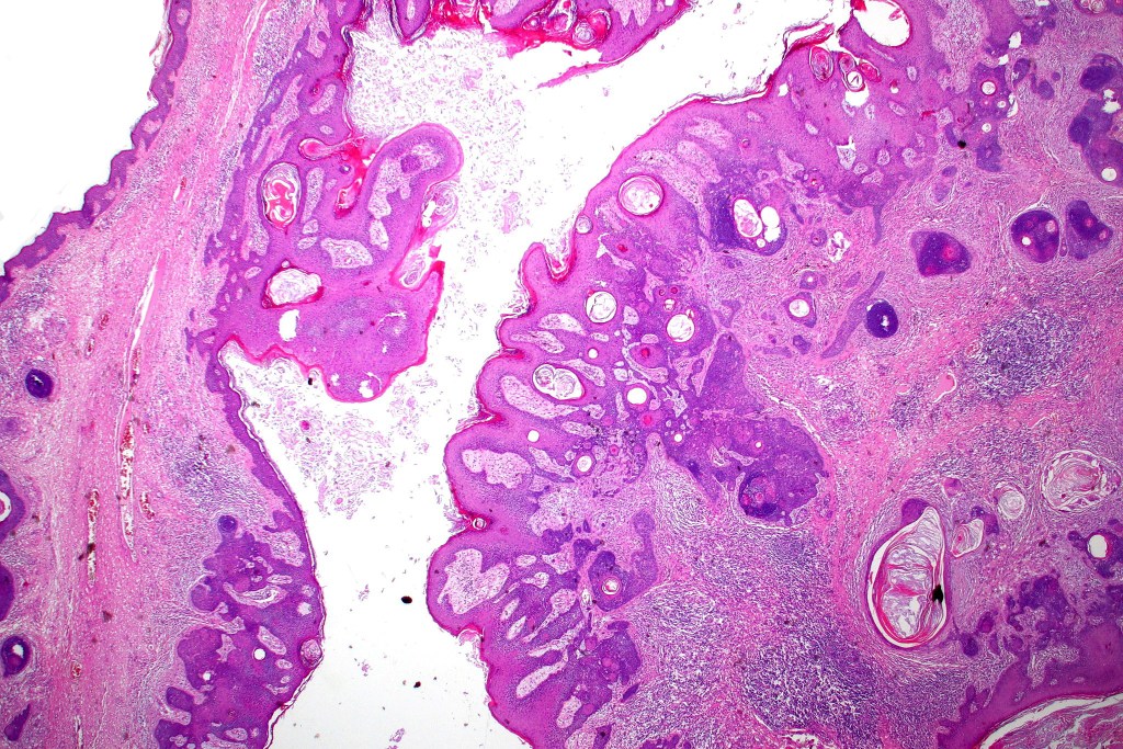 •Variable features include amyloid, focal granulomatous inflammation associated with free keratin & calcification