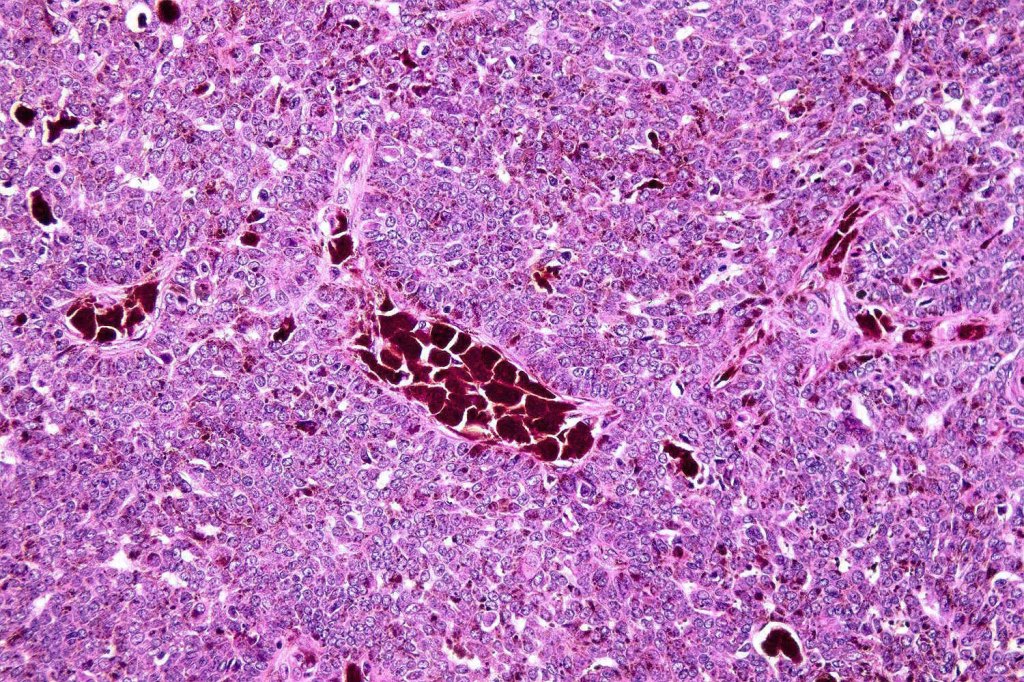 •Trichogerminoma is a distinctive variant being composed of tumor nodules with basaloid cells surrounding pale or eosinophilic micronodules (Zellballen)