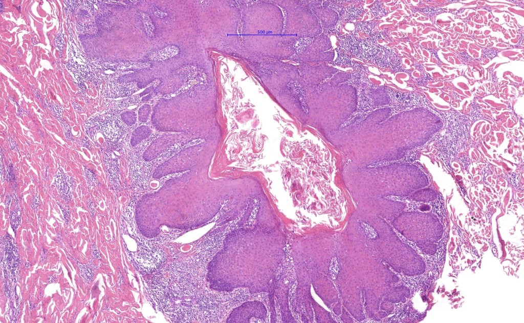•Infundibular>trichilemmal keratinization