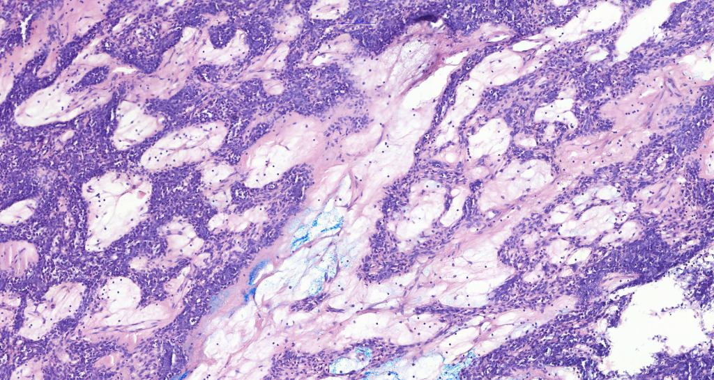 •The tumor is so distinctive that IHC is rarely necessary- EMA & CEA highlight ductal/glandular differentiation, CK7 & β catenin +ve, myoepithelial cells- SMA & S100 +ve