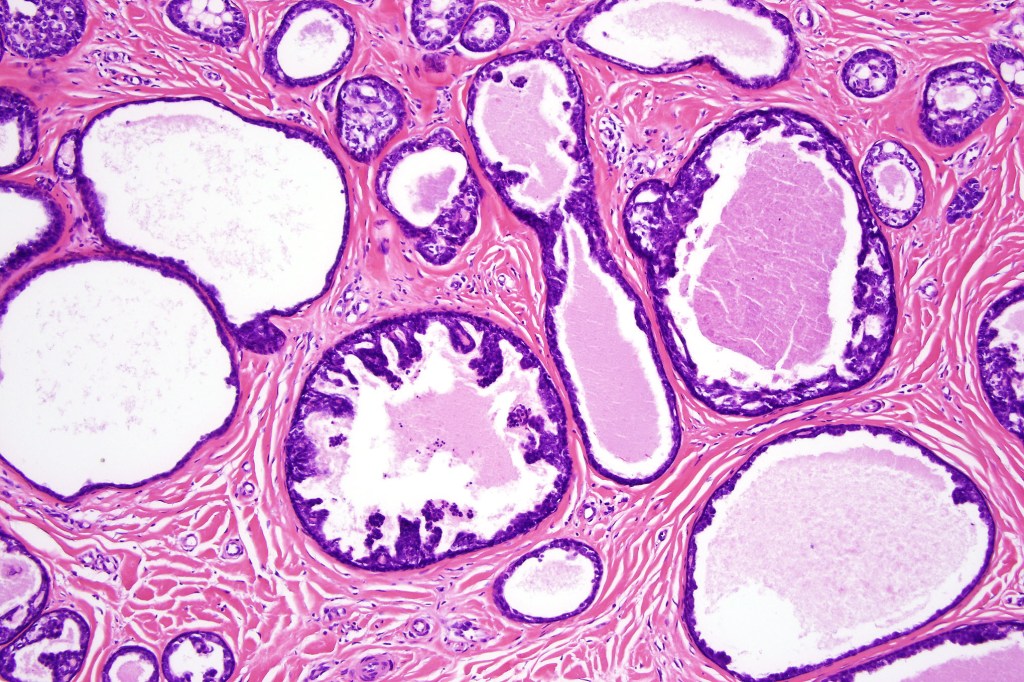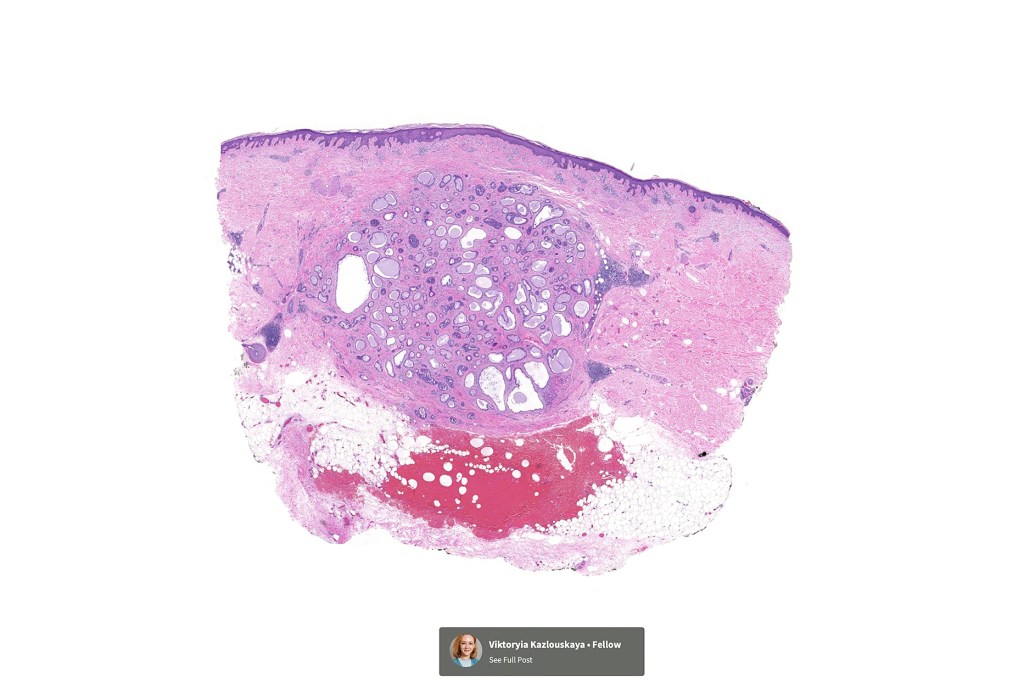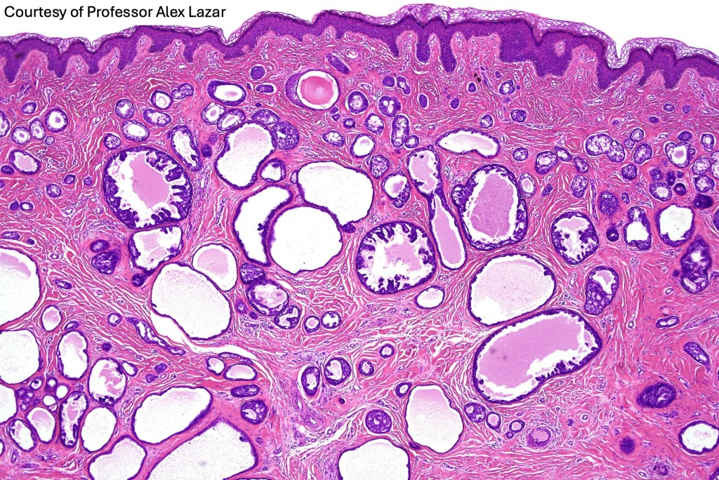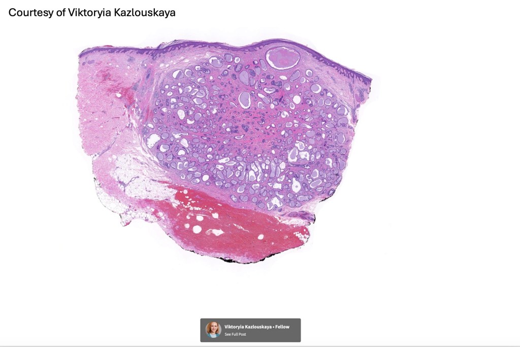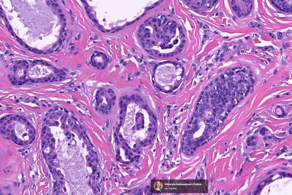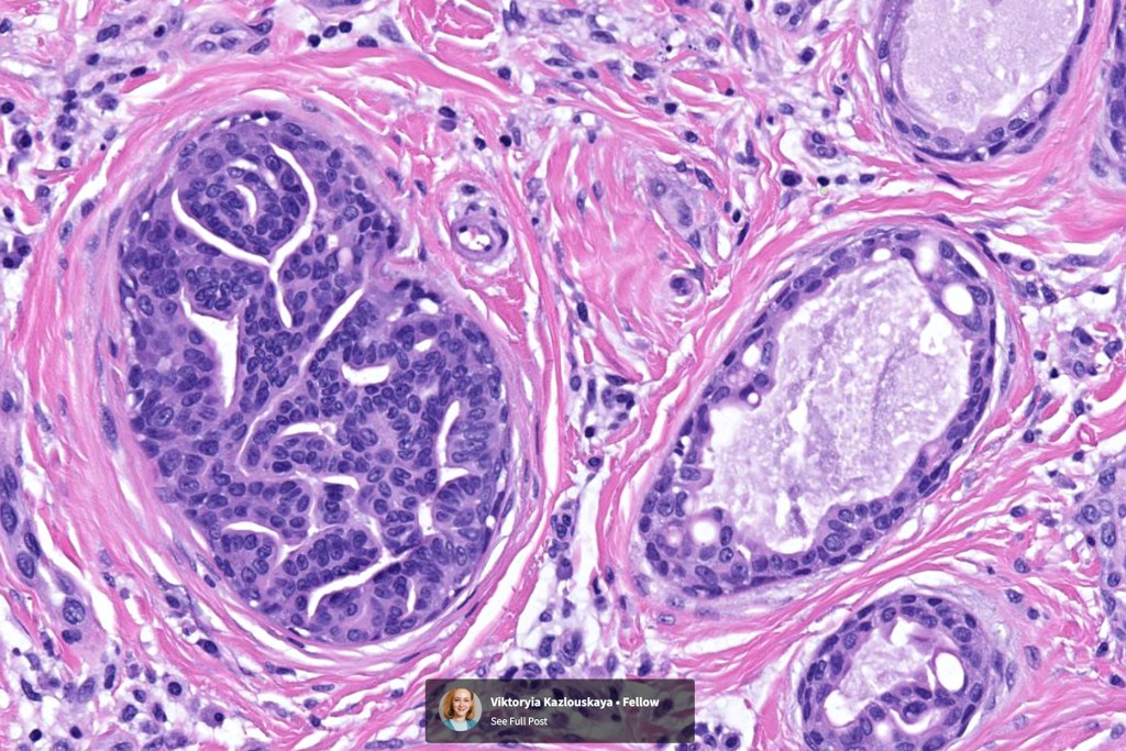 •Circumscribed nodule composed of ducts & cysts embedded in a dense fibrous stroma sometimes associated with lymphoid aggregates/germinal centers