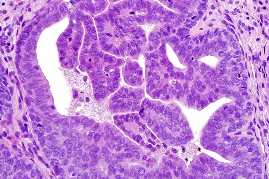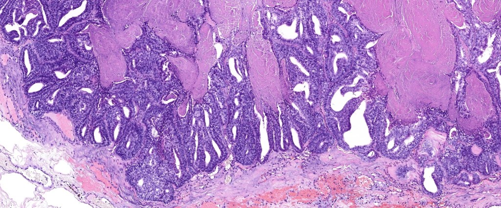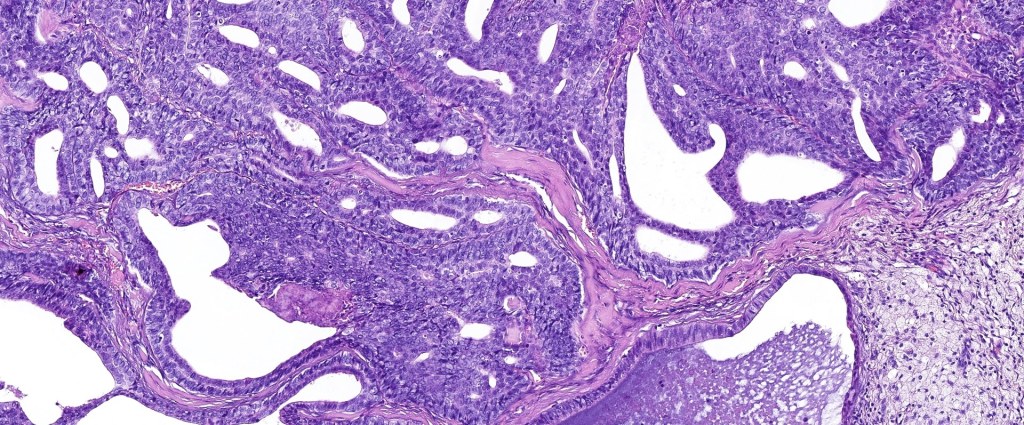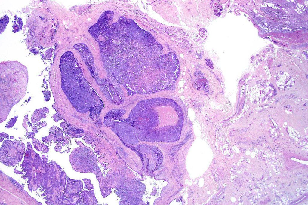 Rare sweat gland carcinoma which may be confused with a papillary metastasis and should be differentiated from papillary eccrine adenoma. Recently has been shown to be associated with HPV42 in the majority of cases Leiendecker et al 2023). A small subset is associated with mutations in BRAF V600E.