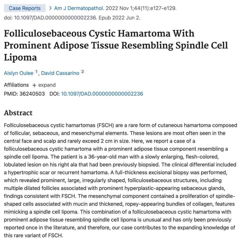 •Rare, generally presenting as a solitary, flesh-colored papule or nodule on the central face with a predilection for the nose