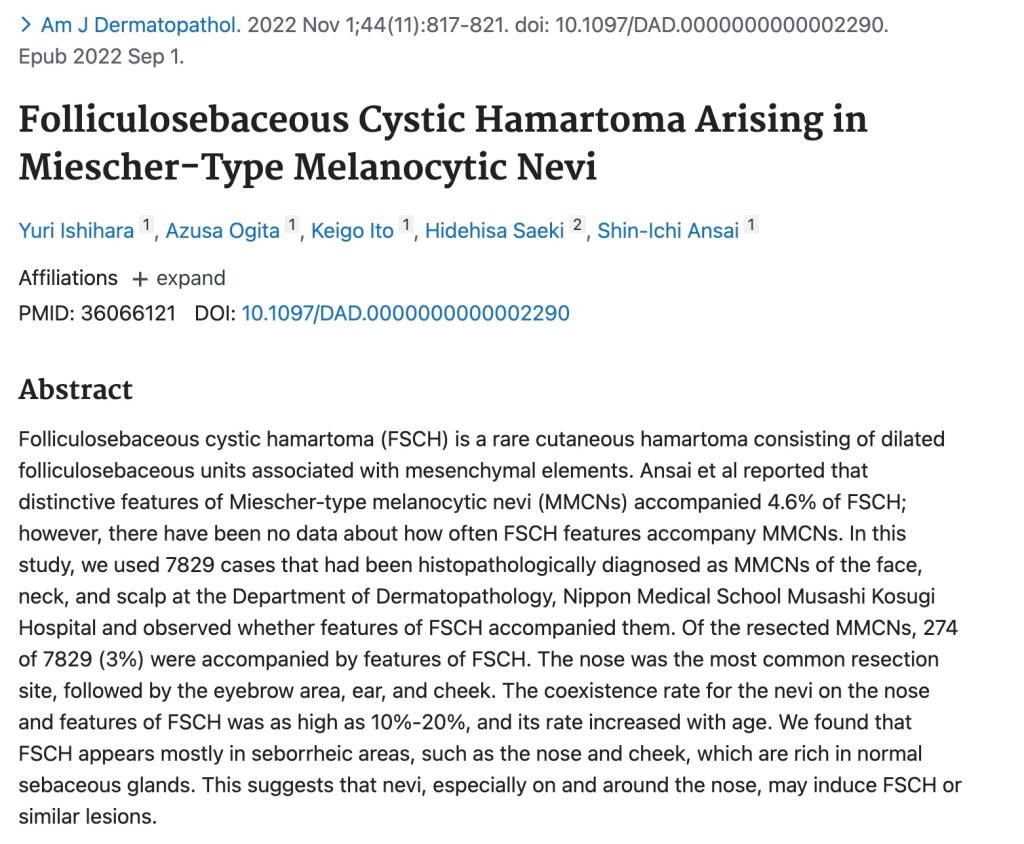 •Significant association with Miescher nevus (as high as 20% for nasal lesions)