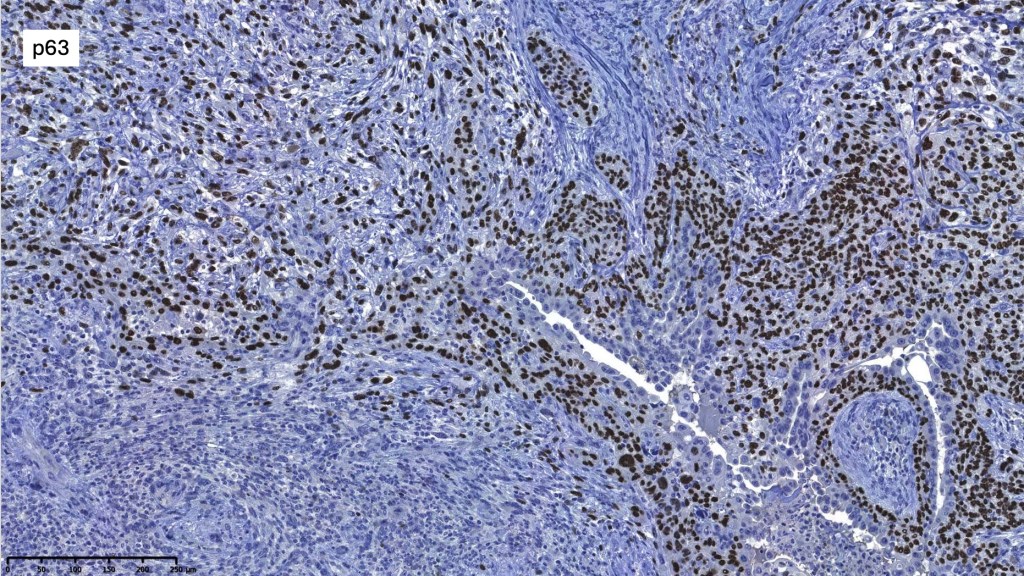•Biphasic tumor combining squamous cell carcinoma and adenocarcinoma; the latter showing ductal and glandular differentiation
