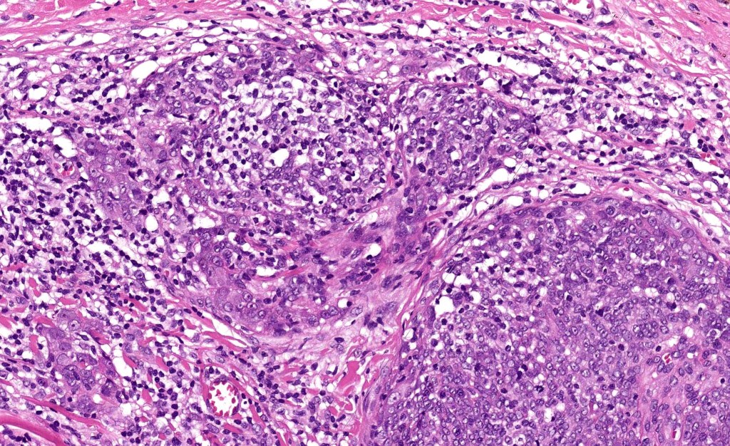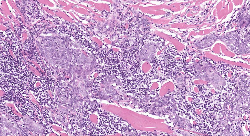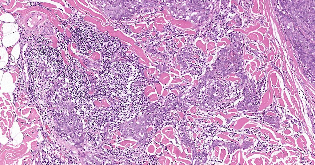 •Variably considered a variant of squamous cell carcinoma or an entity sui generis representing the cutaneous equivalent of nasopharyngeal lymphoepithelioma-like carcinoma; lastly is the possibility of an adnexal carcinoma