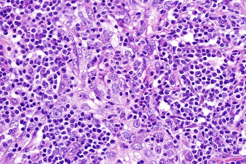 In the first instance, metastasis from a nasopharyngeal or other primary site (salivary glands, lung, stomach, thymus, larynx, cervix and bladder) must be excluded. Negative in situ hybridisation for EBV is obviously important discriminant. Lymphadenoma cutis is an occasional differential diagnosis. In the latter, the epithelial nests show peripheral palisading and there is no significant cytological atypia or mitotic activity. Lymphoma may somtimes enters the differential diagnosis but immunohistochemistry to display the epithelial component will make the distinction.