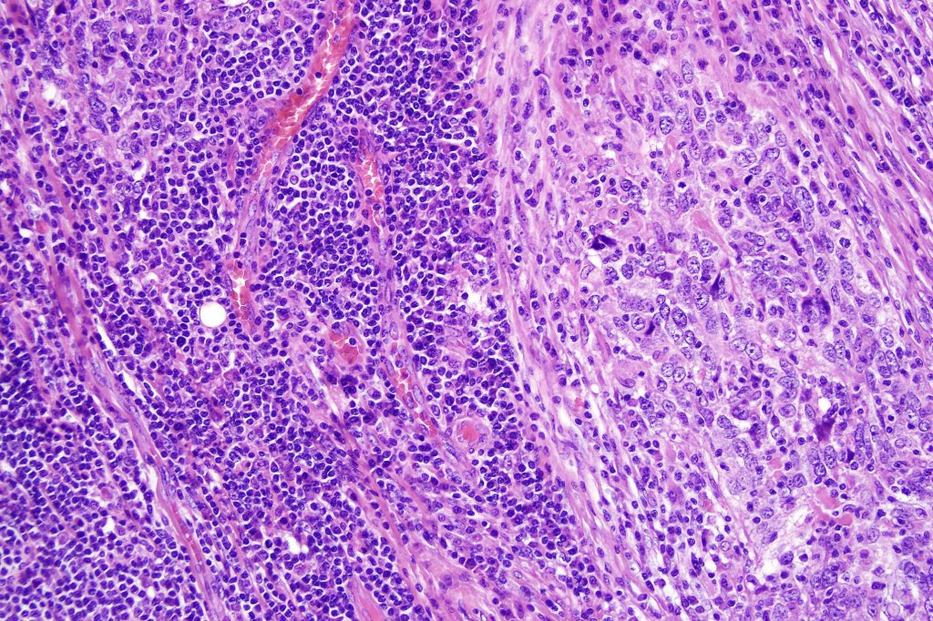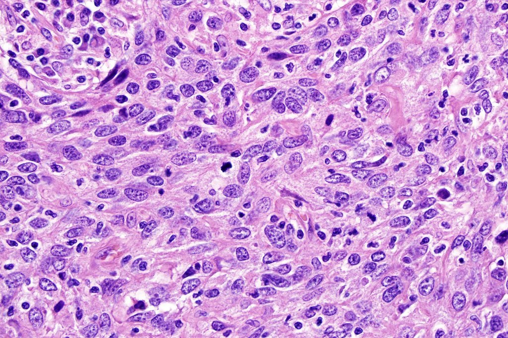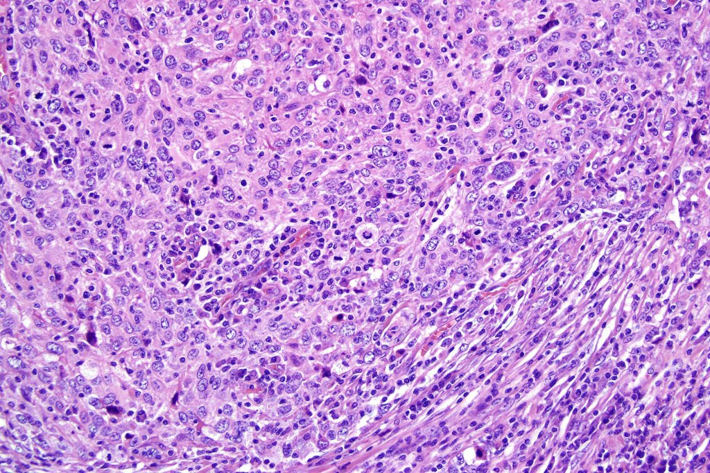 •Marked mitotic activity, variable pleomorphism