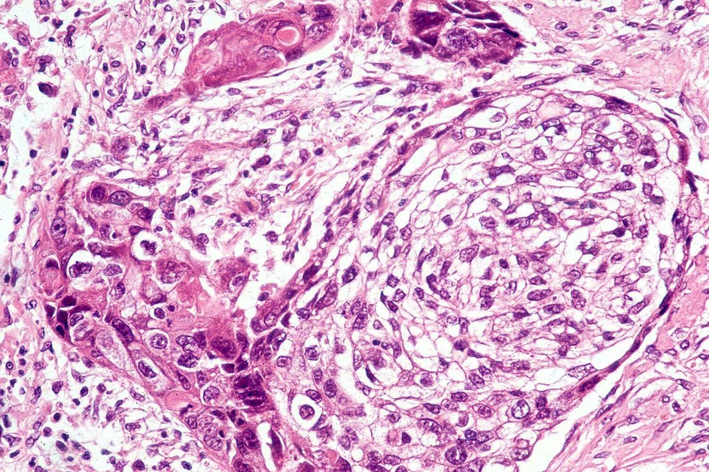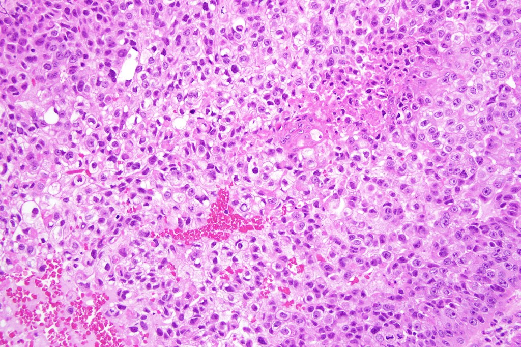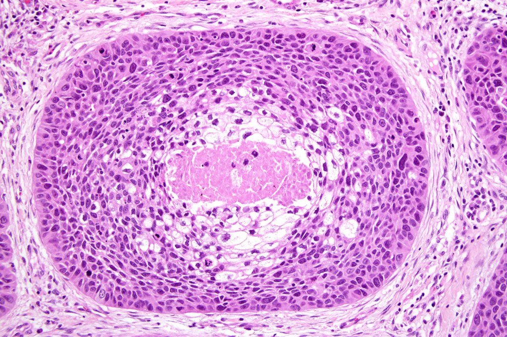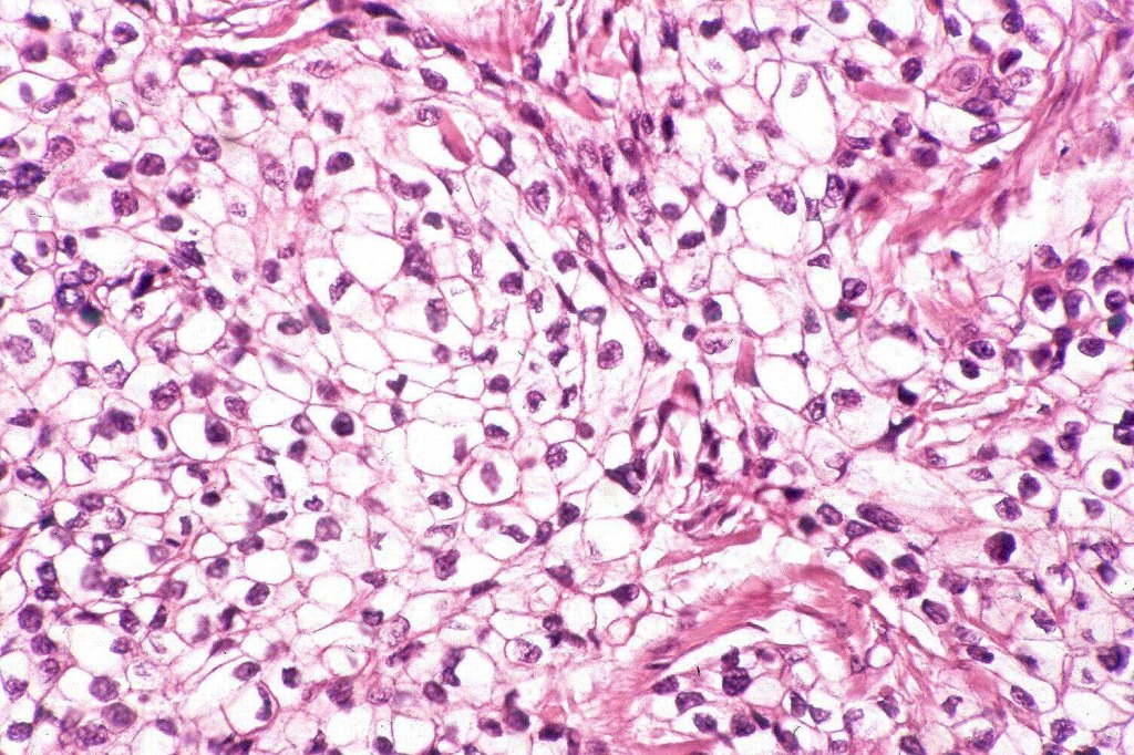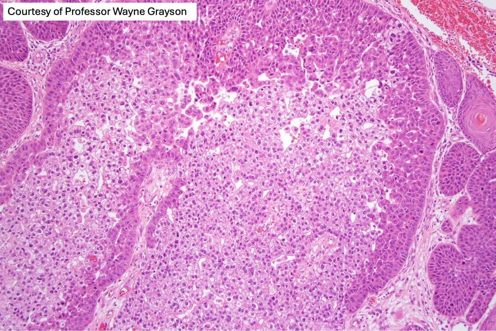 If obvious squamous differentiation is not apparent, then metastatic clear cell carcinoma is an important differential diagnosis. Clear cell change may also be seen in a wide range of tumors including basal cell carcinoma, trichilemmal carcinoma, clear cell hidradenocarcinoma, porocarcinoma & melanoma. These are all discussed in respective blogs.