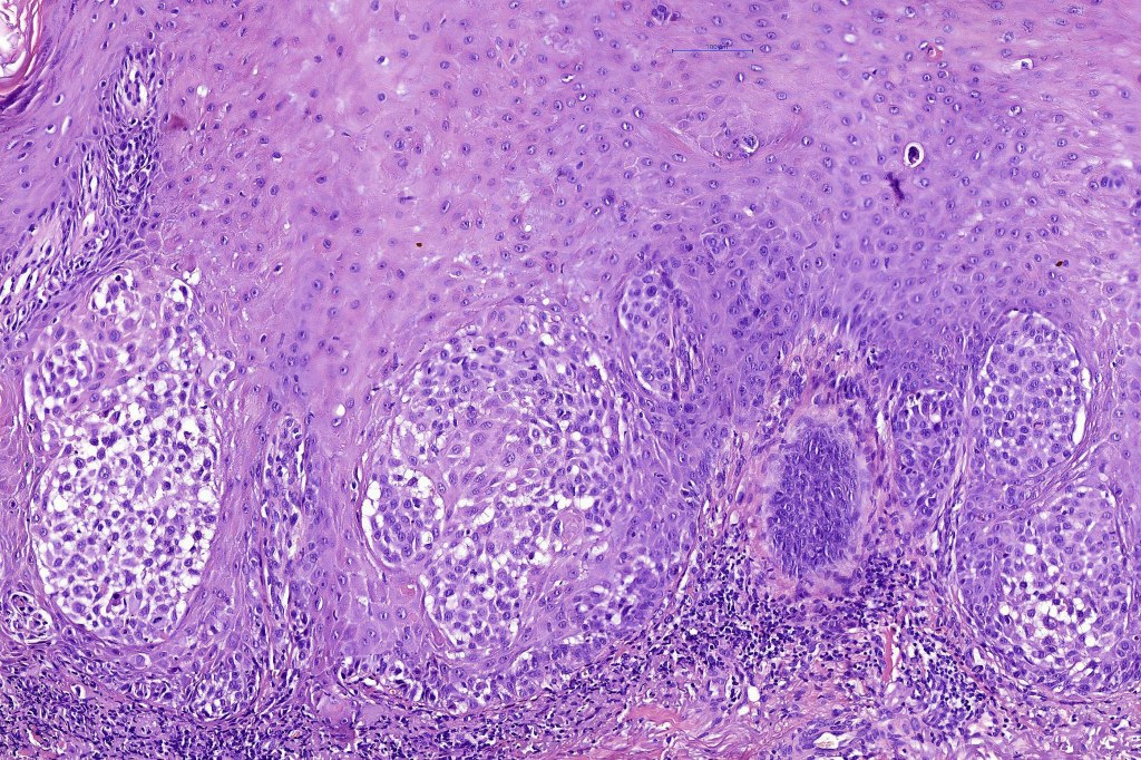 Pigmented variants may be confused with melanoma and Pagetoid variants can be mistaken for extra-mammary Paget’s disease. Immunohistochemistry will solve any diagnostic dilemma.