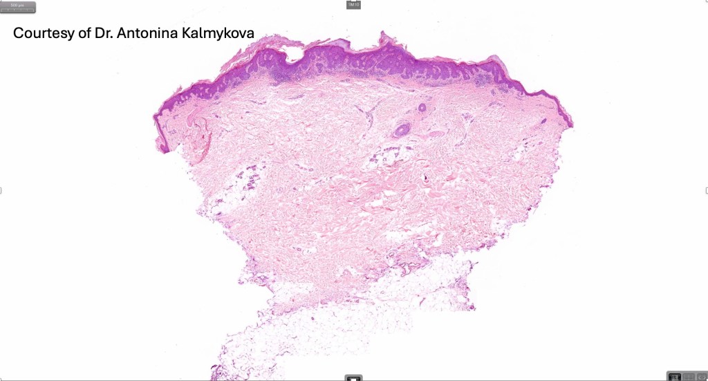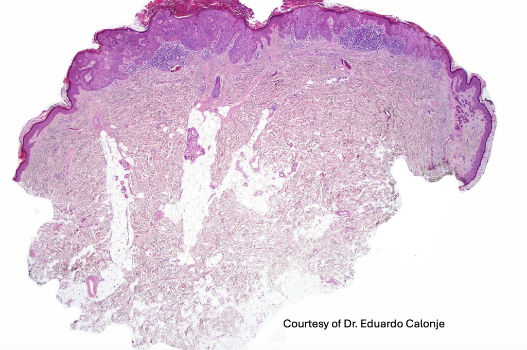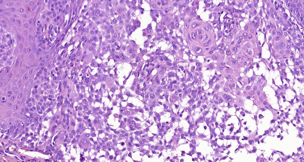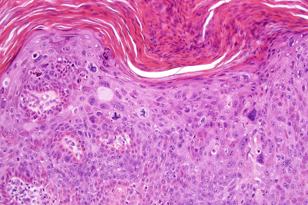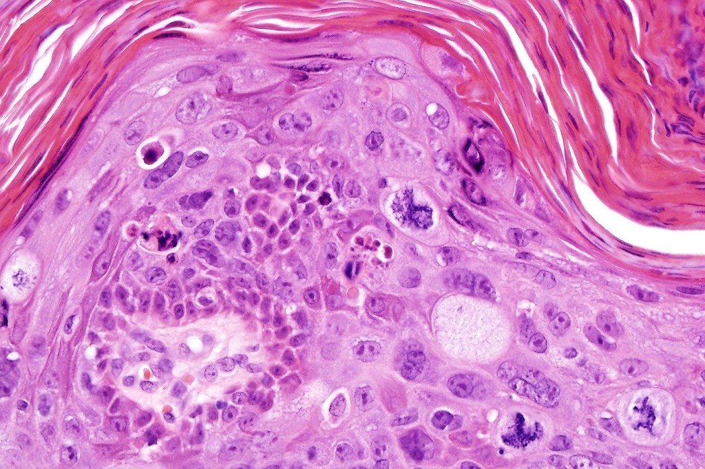 •Full thickness dysplasia (carcinoma in situ) involving the epidermis and intraepidermal adnexal elements