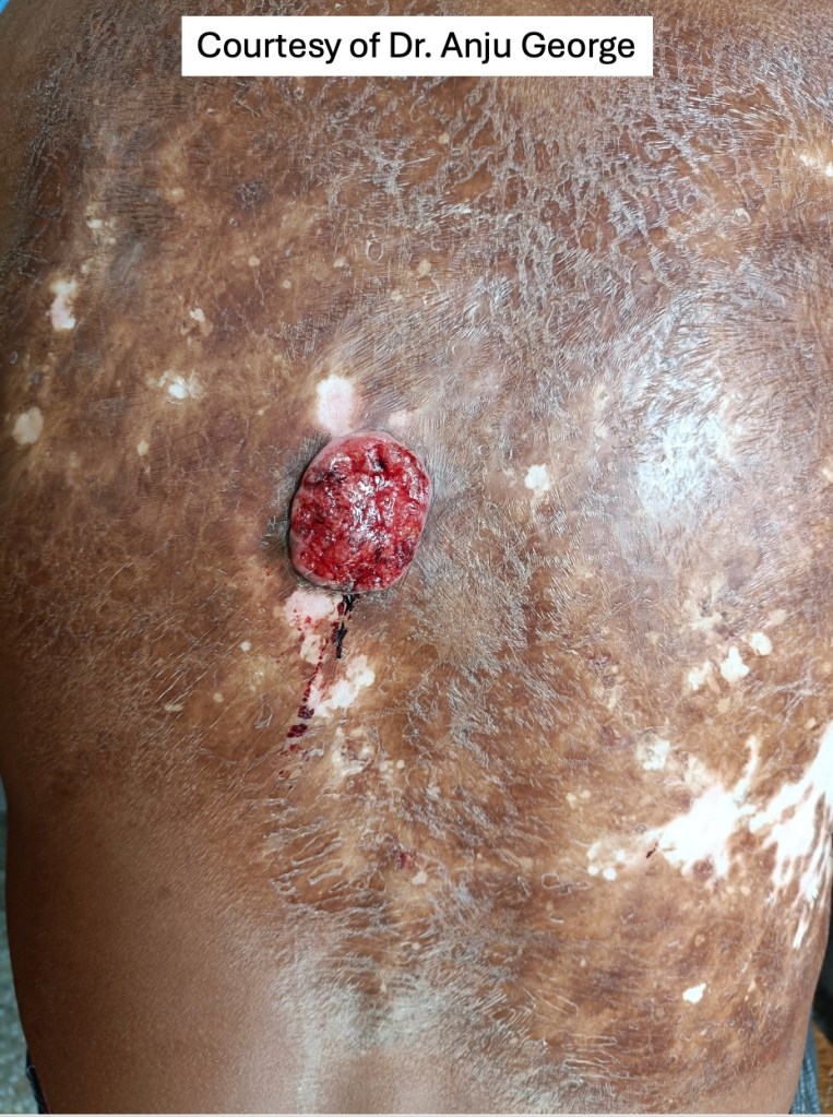 •Etiology includes UVB, HPV, ionizing radiation, scarring e.g., burns, syndromic e.g., xeroderma pigmentosum, albinism, Rothmund-Thompson syndrome & epidermolysis bullosa, immunosuppression, PUVA, chronic infections e.g., tuberculosis, arsenic & coal tar derivatives