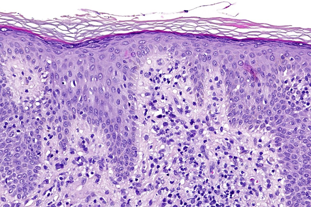 •Compact hyperkeratosis & patchy parakeratosis
