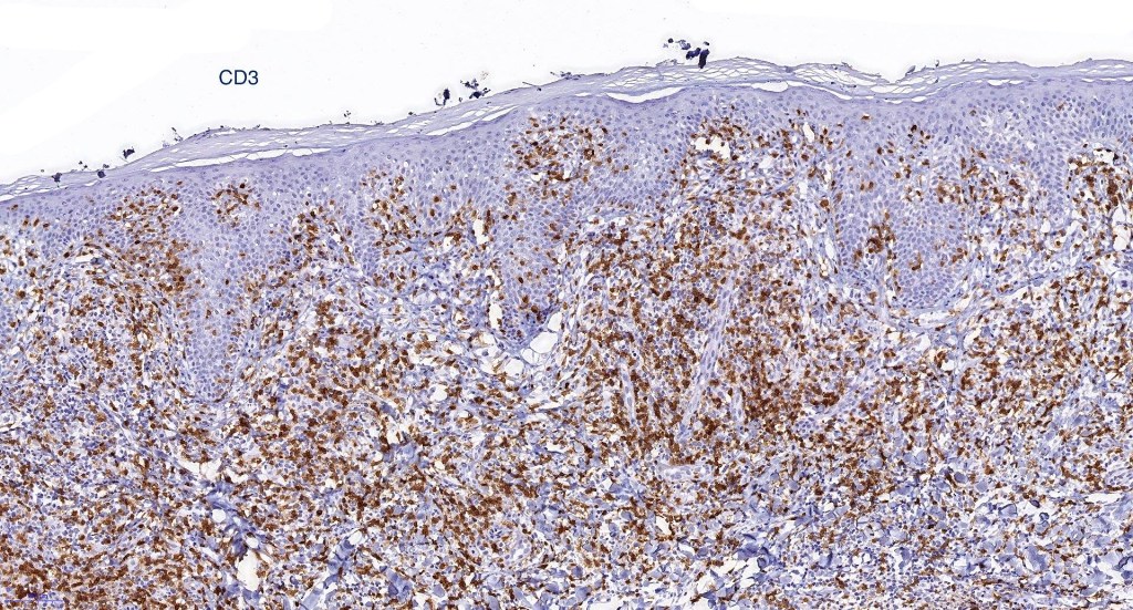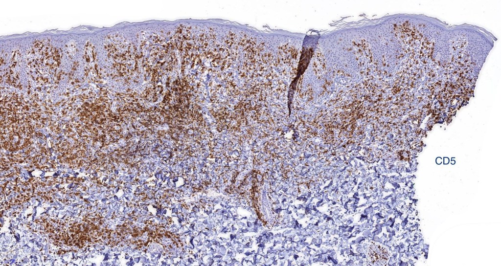 •Variable loss of CD5 (supports the diagnosis) & CD7 (not so helpful as also seen in inflammatory dermatoses)