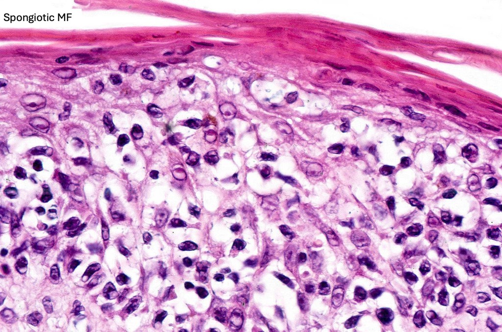 .Although in typical mycosis fungoides fungoides, spongiosis is absent, exceptionally it can be a feature