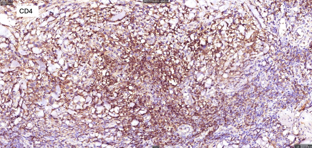 •TCRβ, CD45RO, IL-2R, CLA, CD25, CD2, CD3, CD4, CD5, CD7 +ve