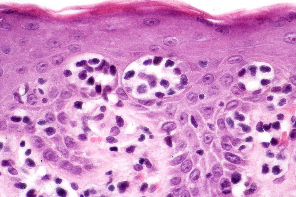 •Epidermotropism is often marked with conspicuous Pautrier microabscesses