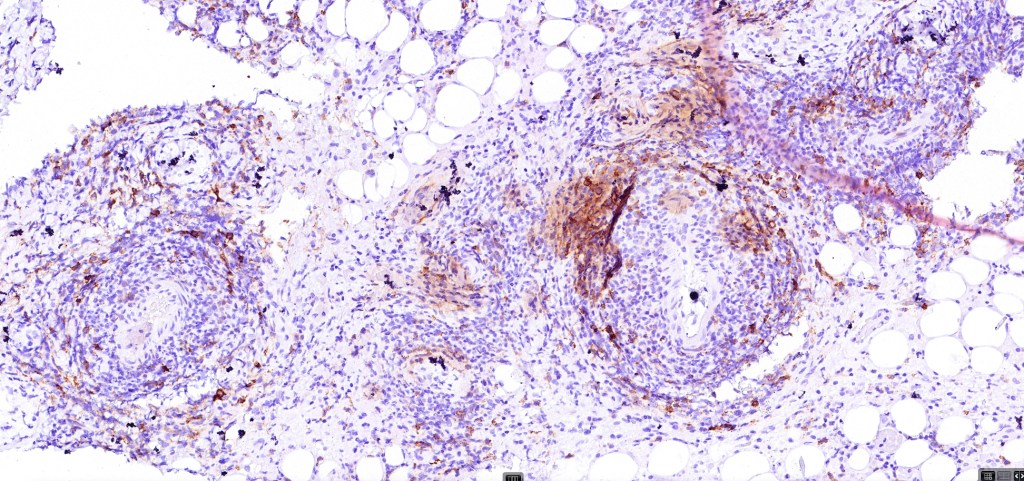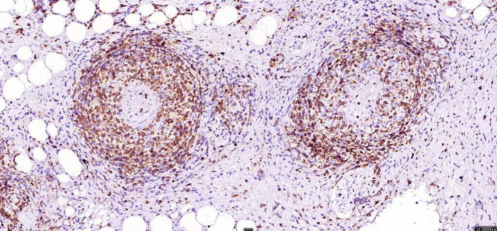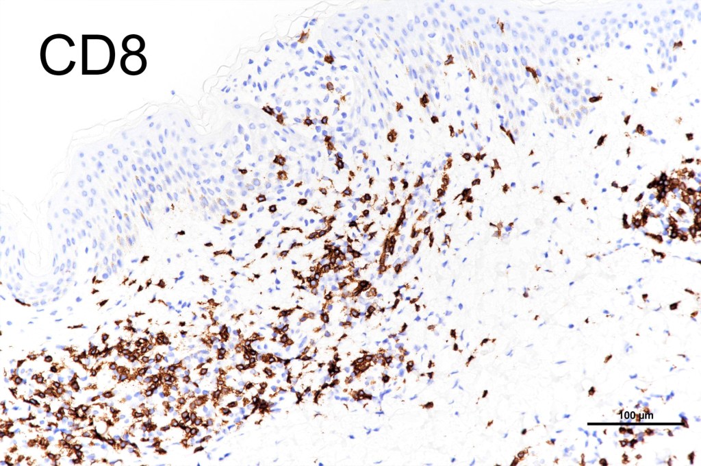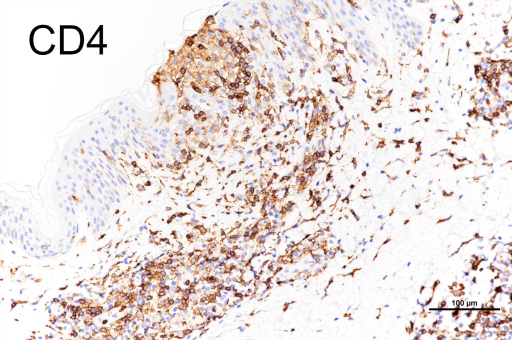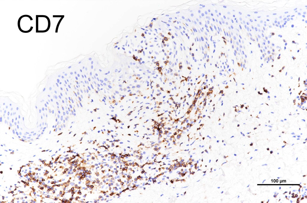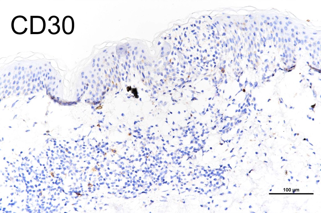 CD30+ve cells may be seen in a wide range of infections including molluscum contagiosum, herpes simplex, Milker’s nodule, EBV, HTLV-1, HIV, scabies & syphilis. CD30+ve cells may also be seen in PLEVA & drug reactions